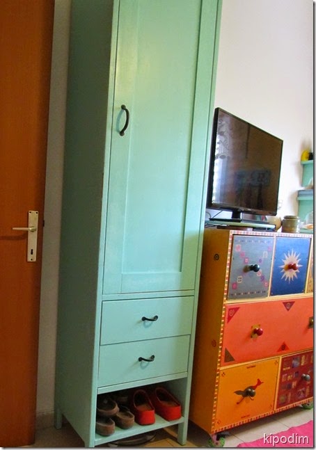השידה הצבעונית נבנתה ונצבעה על ידי לפני שנים. את כמות המחשבה והעבודה שהשקעתי בה אני זוכרת עד היום, ולכן, בינתיים, אני לא מסוגלת בשום אופן לדרוס את העיצוב הקודם ולעצב אותה מחדש…